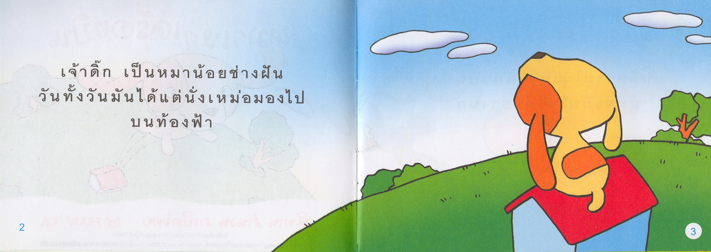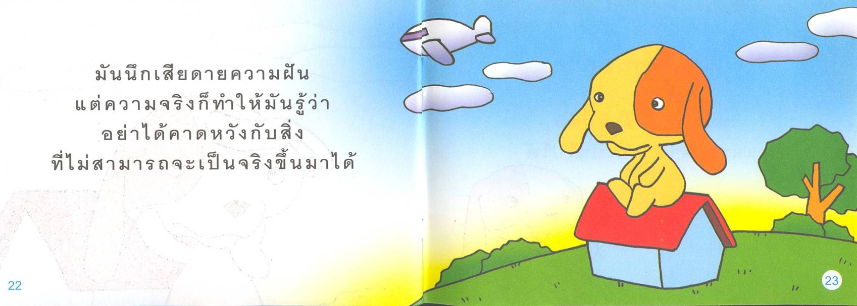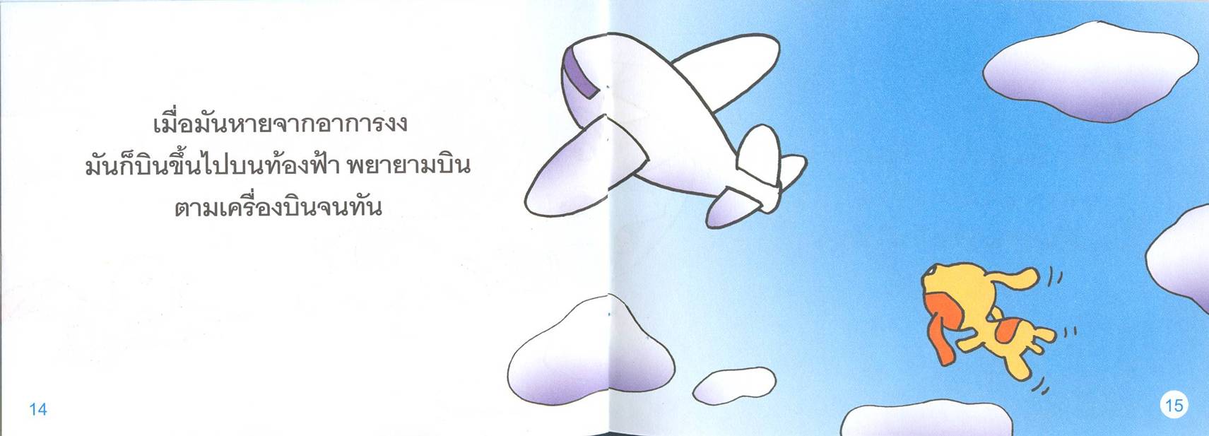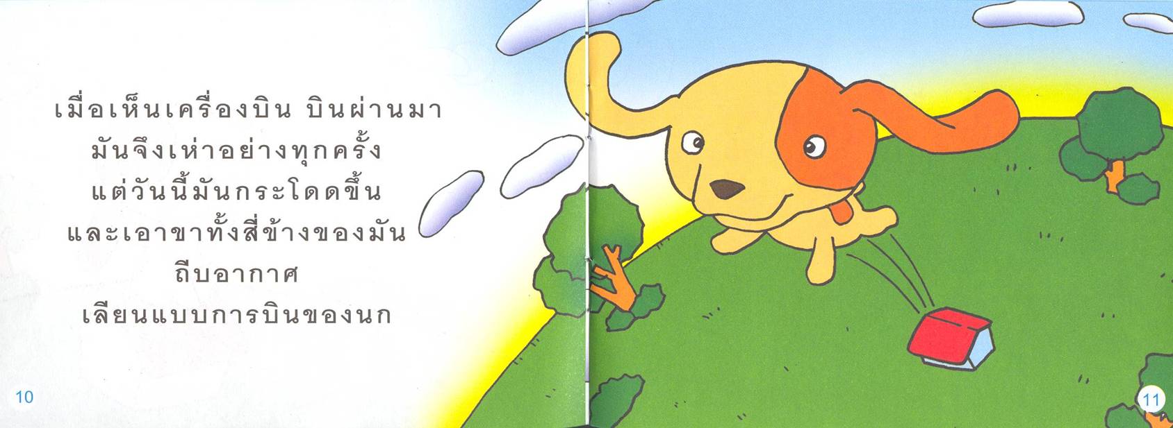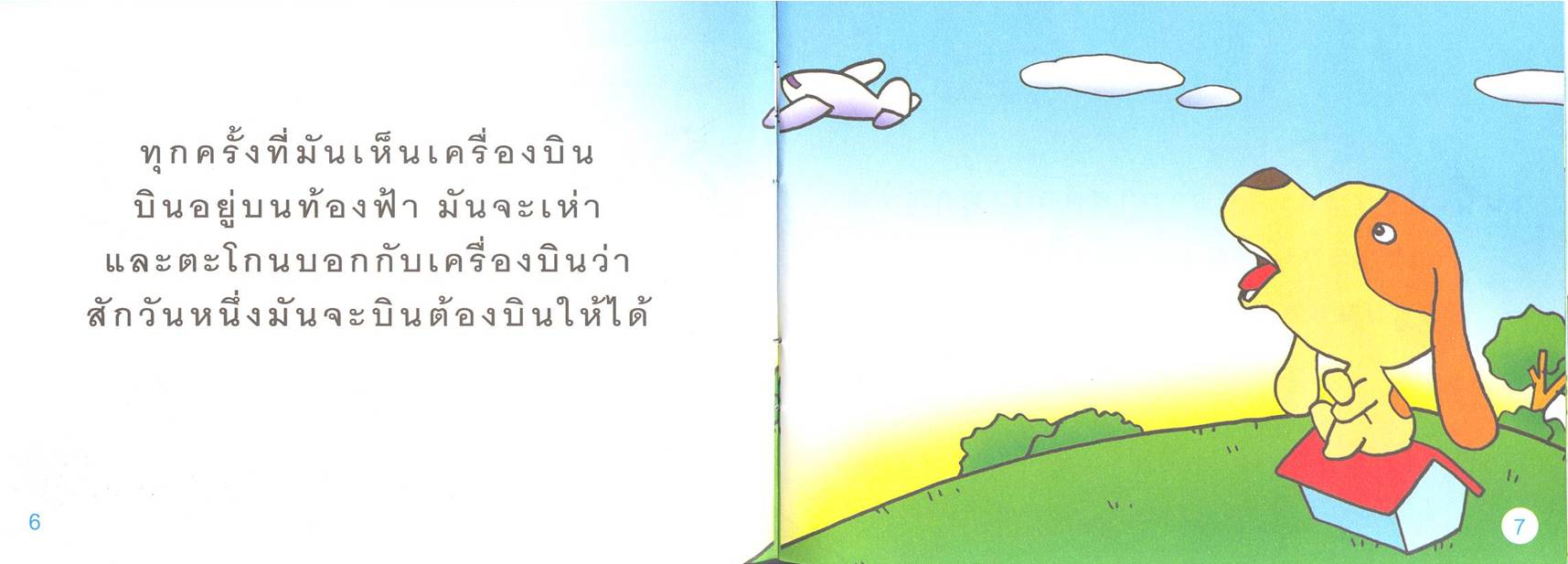 2. หมาเห่าเครื่องบิน (A dog barks at the airplane.) Story by Peaw Ka, Athens Books Co. Click in each picture to listen to the story